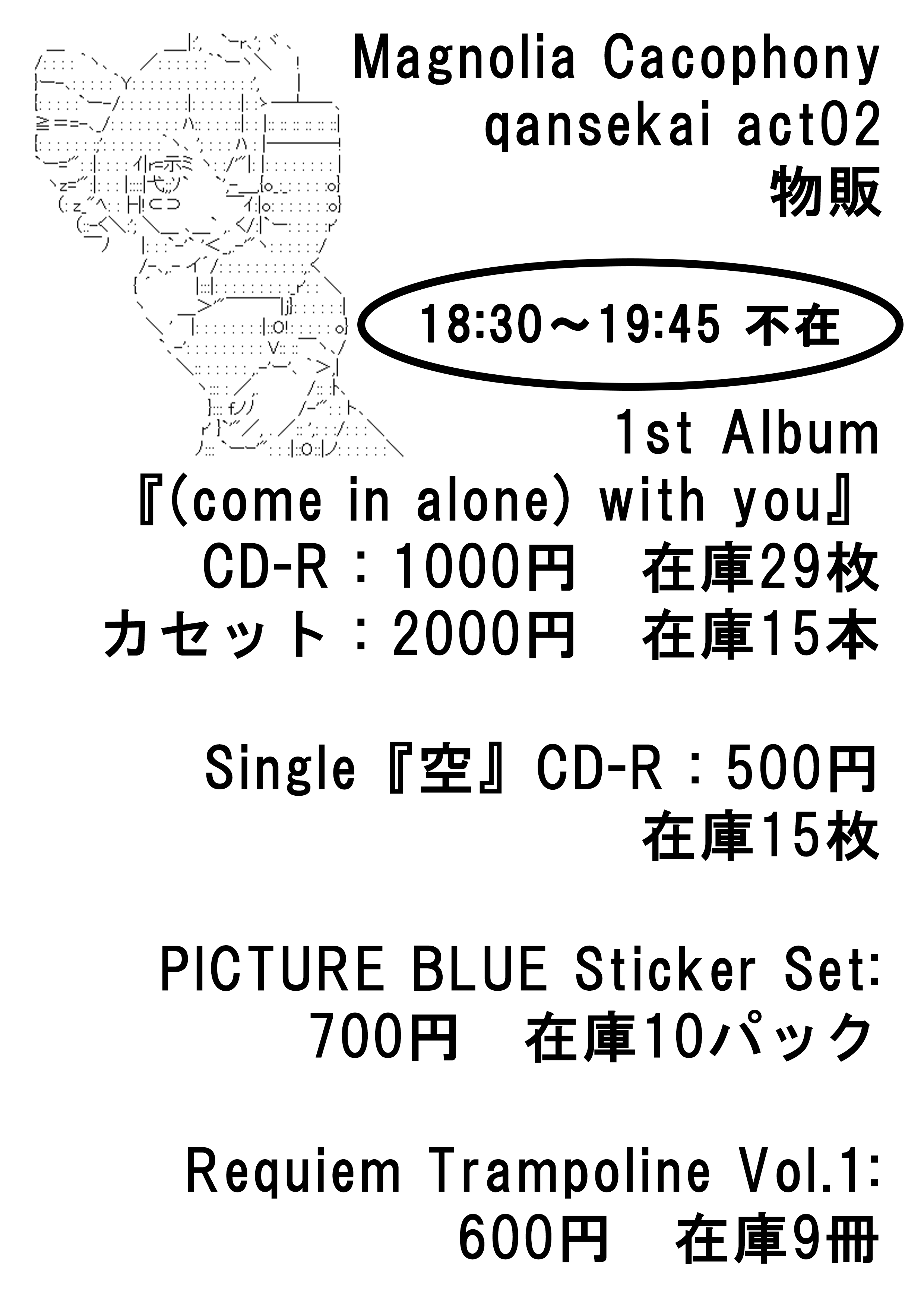 Magnolia Cacophony - (come in alone) with youCD-R 1000円 カセット 2000円